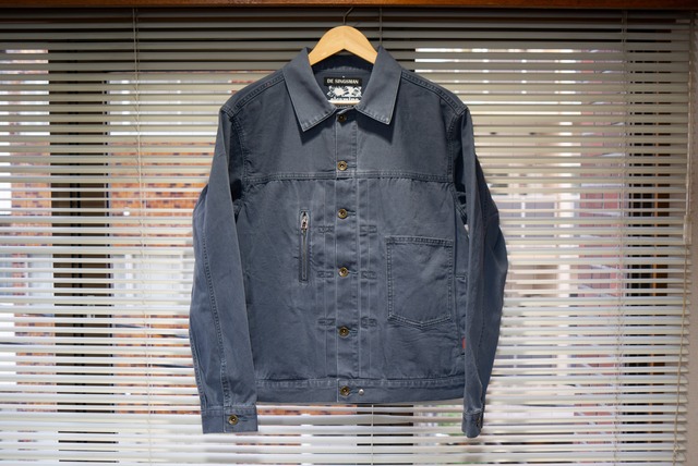 1st type VTG Twill Trucker Jacket オリジナルのパターンで引き直したsingsmanのVTG twill jacket こちらは高密度のtwillを使用して加工したビンテージタイプ コットン100%の細番手の高密度はハリのある硬さと厚さがあり上質な品を感じます。 この肉感が通年着用可能を実現して様々のシーンやレイヤードスタイルを楽しめるよう イメージにぴったりに仕上がりました。 着心地、シルエット、各部のディティールにも拘りをいれてパターンを作成などなど 同素材のwork pantsと一緒にセットアップも可能ですので ぜひ楽しんでほしい一品です! グッドタイム始まりの予感 *サイズ表は画像の最後を参照ください。